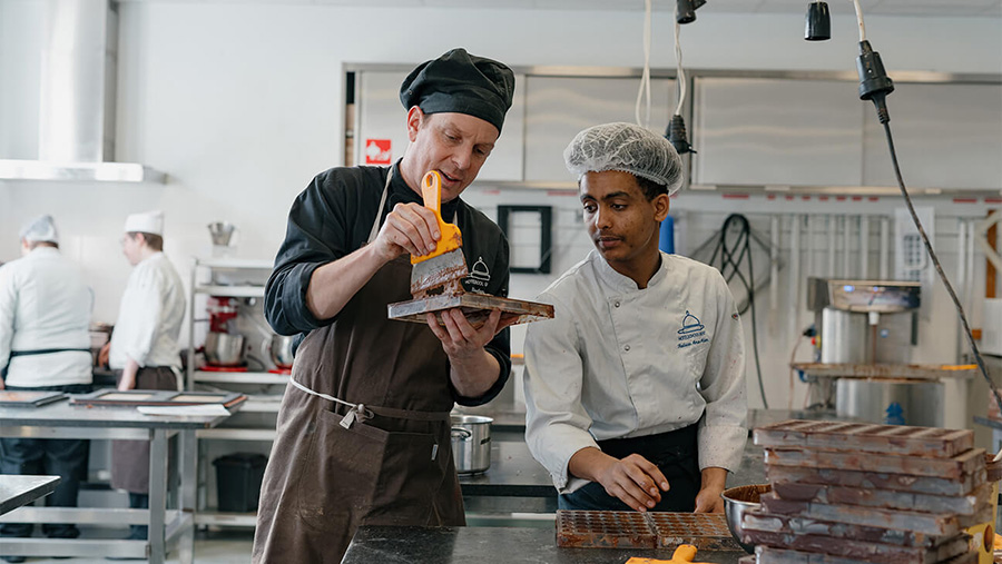 In our Bread and Pastery / Chocolate Processing courses we keep craftsmanship as well as future developments as a focal point. While teaching how to craft bread, pastries and chocolate by hand, we also make students familiar with a wide range of industrial equipment and tools.