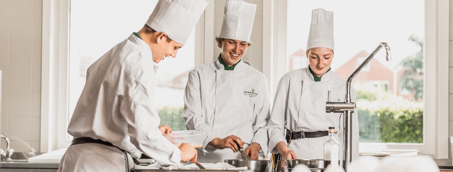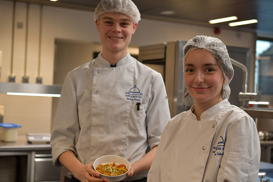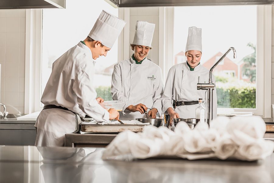 ‘Hospitality’ is about dealing with customers in a pleasant and polite way. Both the Hotel and Restaurant and Kitchen programmes teach students the tricks of the trade: receiving and serving customers in an impeccable manner, offering culinary excellence and providing the correct information, and working together with colleagues as a well-oiled team. We see a neat appearance and language, together with achieving of a sound theoretical knowledge and excellent workmanship, as priorities in our education project.